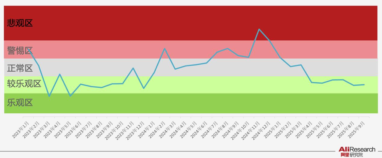 电商消费维权指数波动图(2023年1月—2025年9月) (数据来源:阿里研究院)